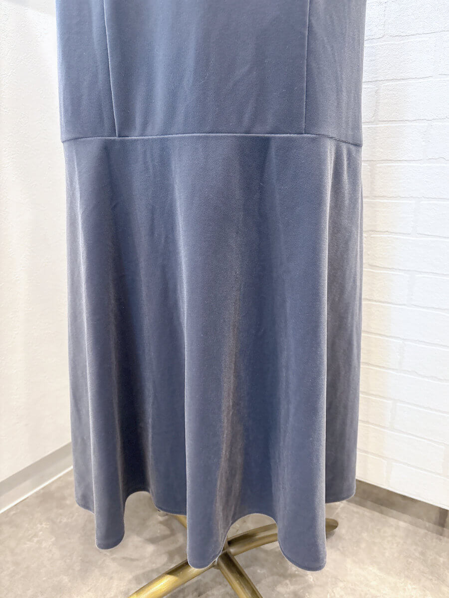 ボディラインを拾いすぎないシルエットと裾にかけて緩やかに広がるフレアデザインが