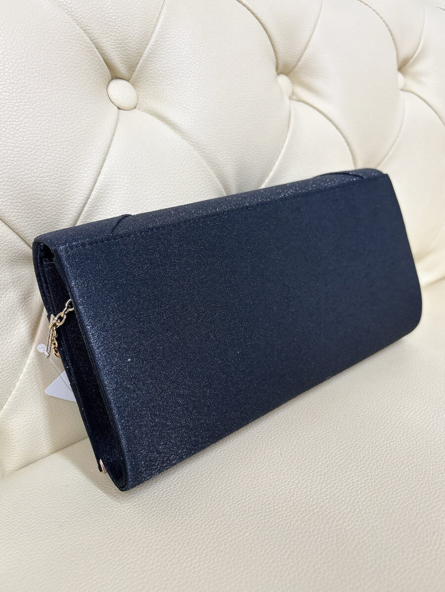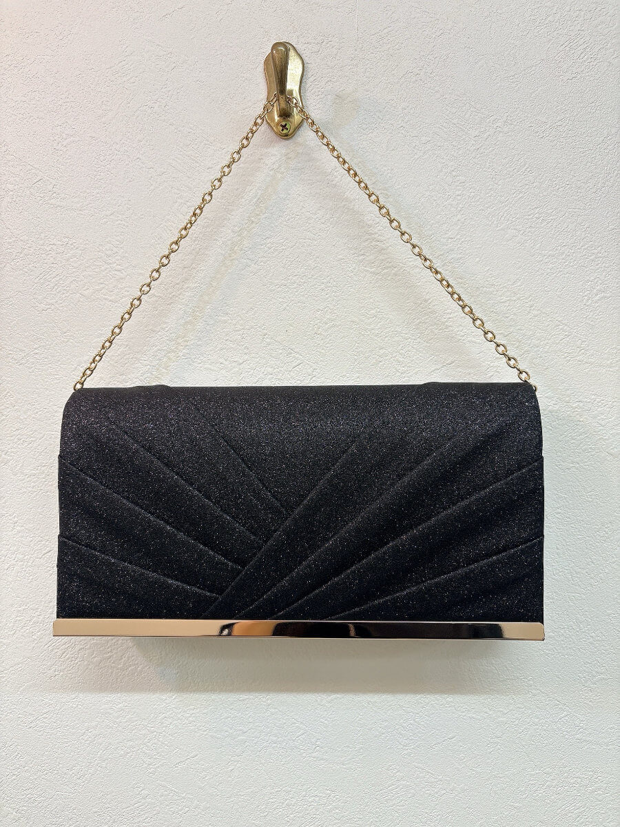 ◇カラー:ブラック ◇大きさ:横25cm/縦14cm ◇商品について:光沢のあるサテン生地にブラックのグリッターが上品で華やかなバッグです。