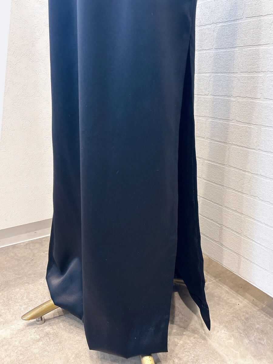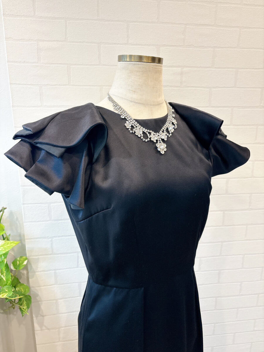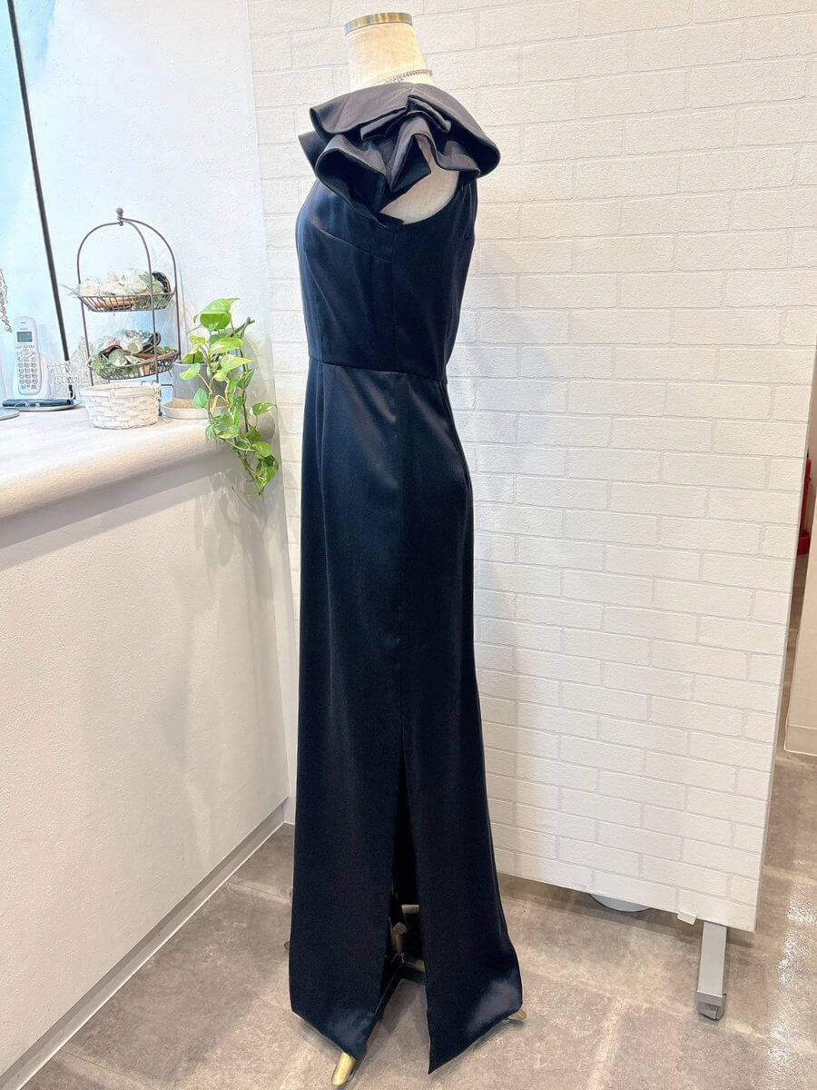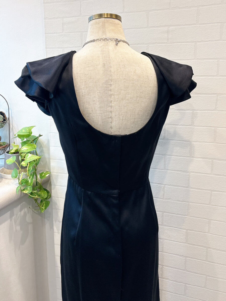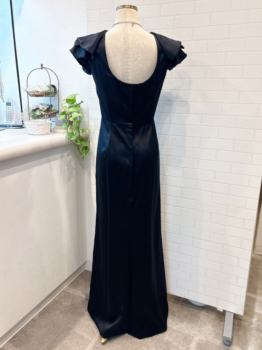 ◇商品について:こちらのブランドはオートクチュール商品。某有名雑誌掲載商品、女優さんがイベントでご着用された商品を特別に仕入れしております。衣装として作成されている為デザイン性抜群で誰とも被ることのない特別な一着となっております。Iラインの美しいシルエットはシンプルで上品。袖の程よいフリルがワンポイントに。サイドのスリットは程よく仕上げられており一般の方も着やすい仕様になっています。後ろはボタンで留めるため後ろ姿も上品なお品となります。