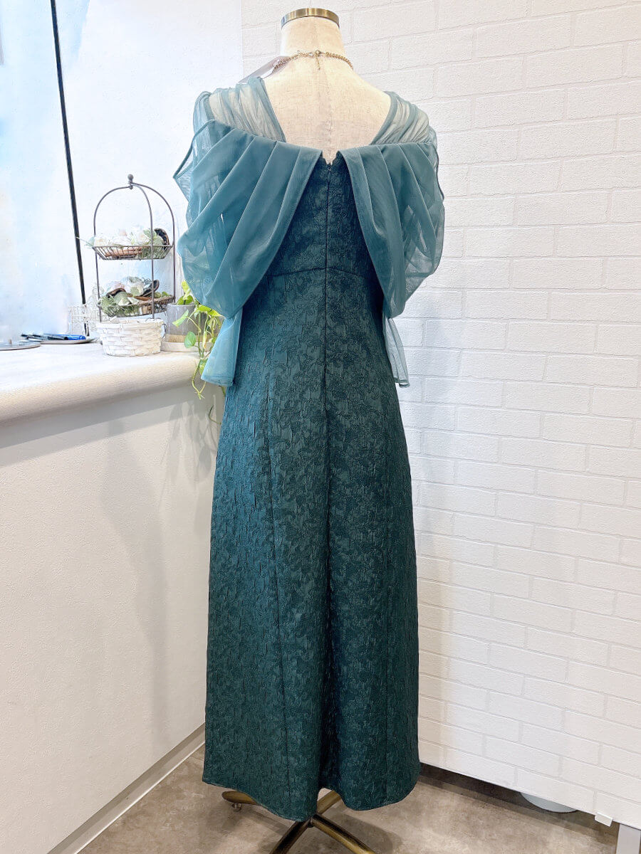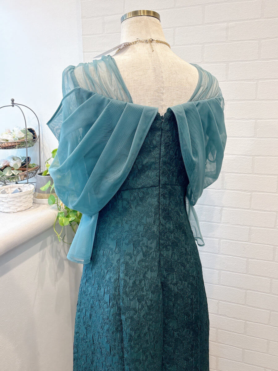 ほどよい光沢と立体感のあるジャガード素材を採用。ほどよいAラインシルエットで上品に美しく見せてくれます。
