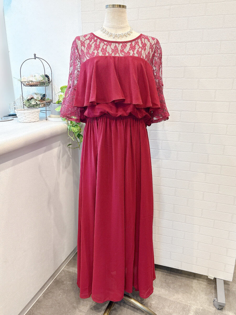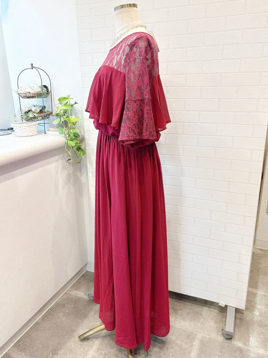 フレアディテールレーススリーブドレス3Lrd