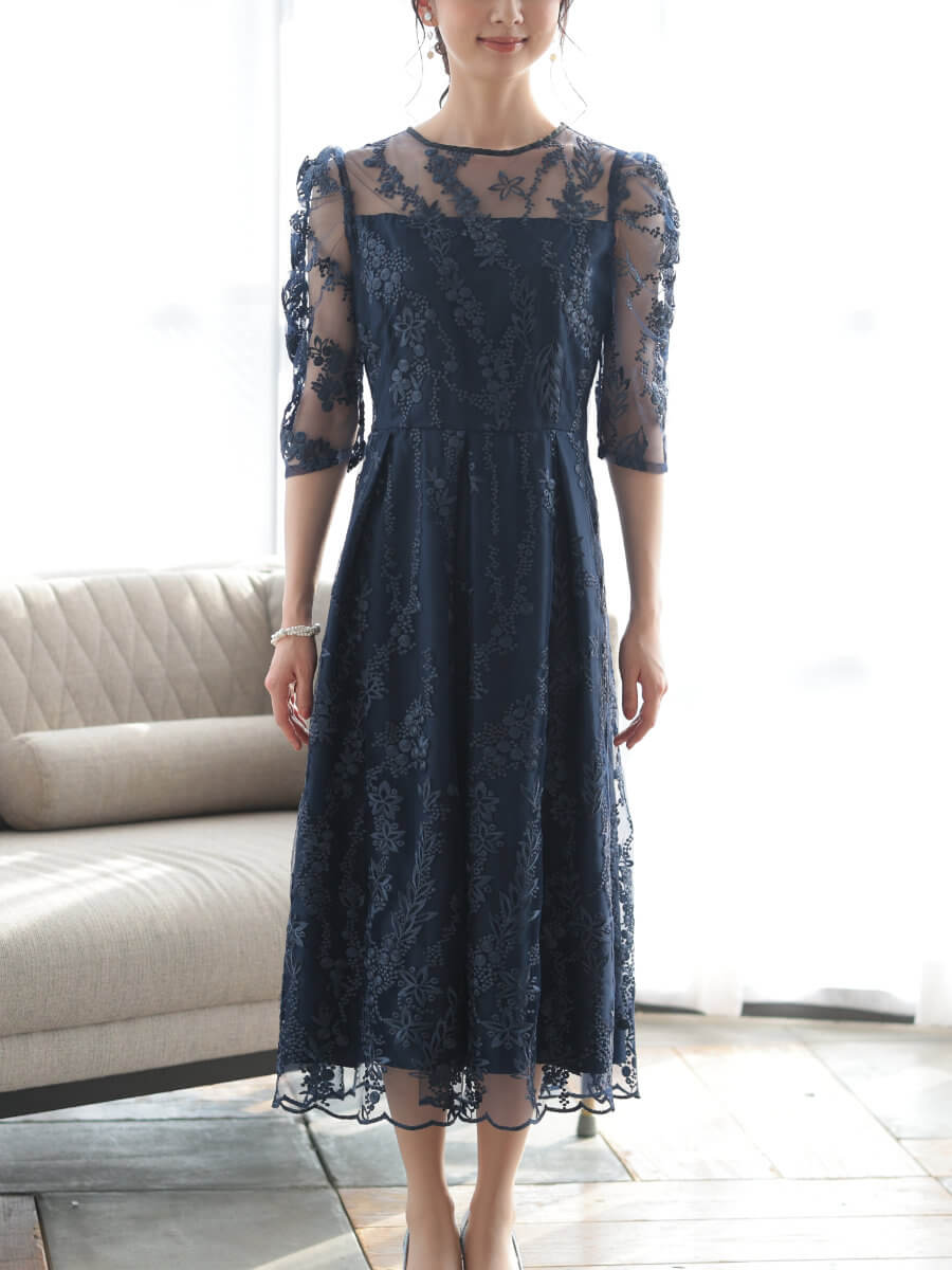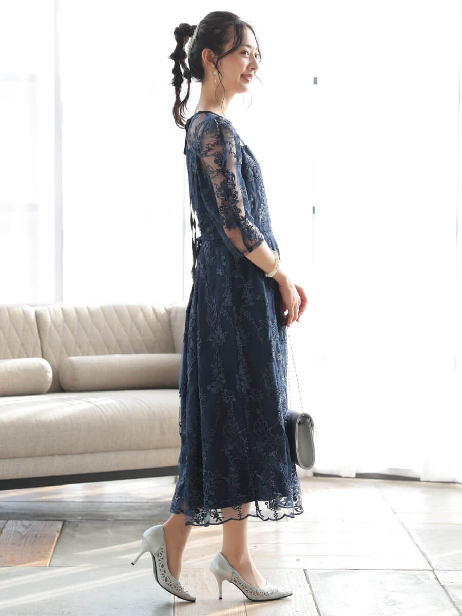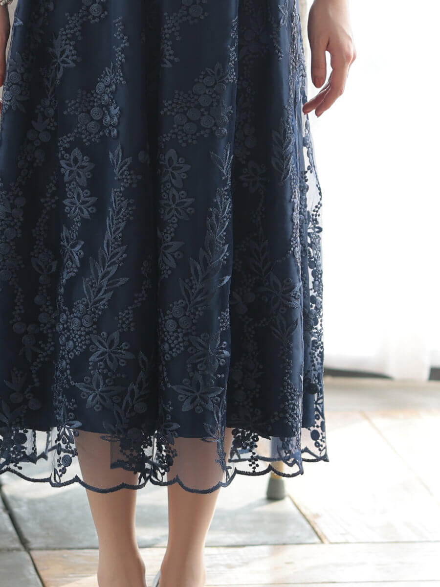 フラワー刺繍ミディドレスLnv
