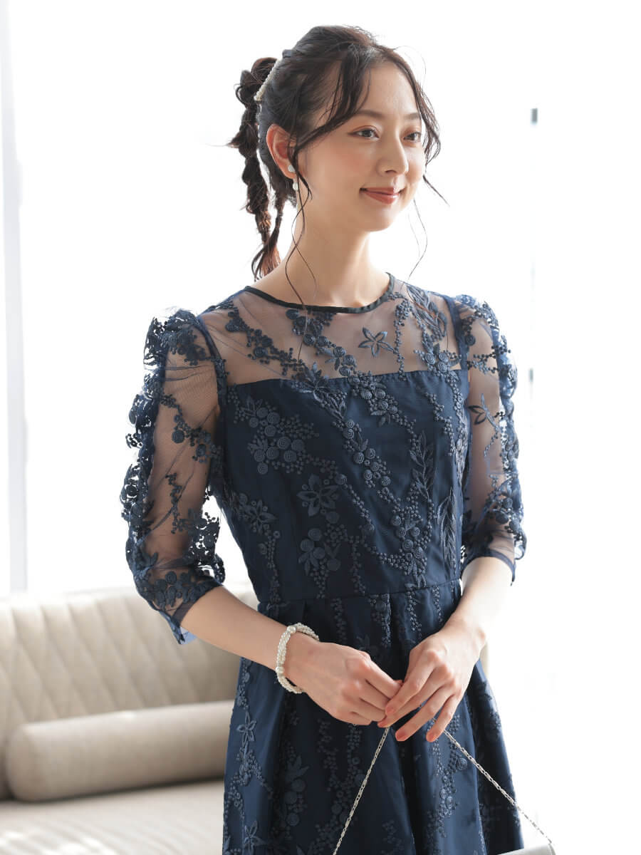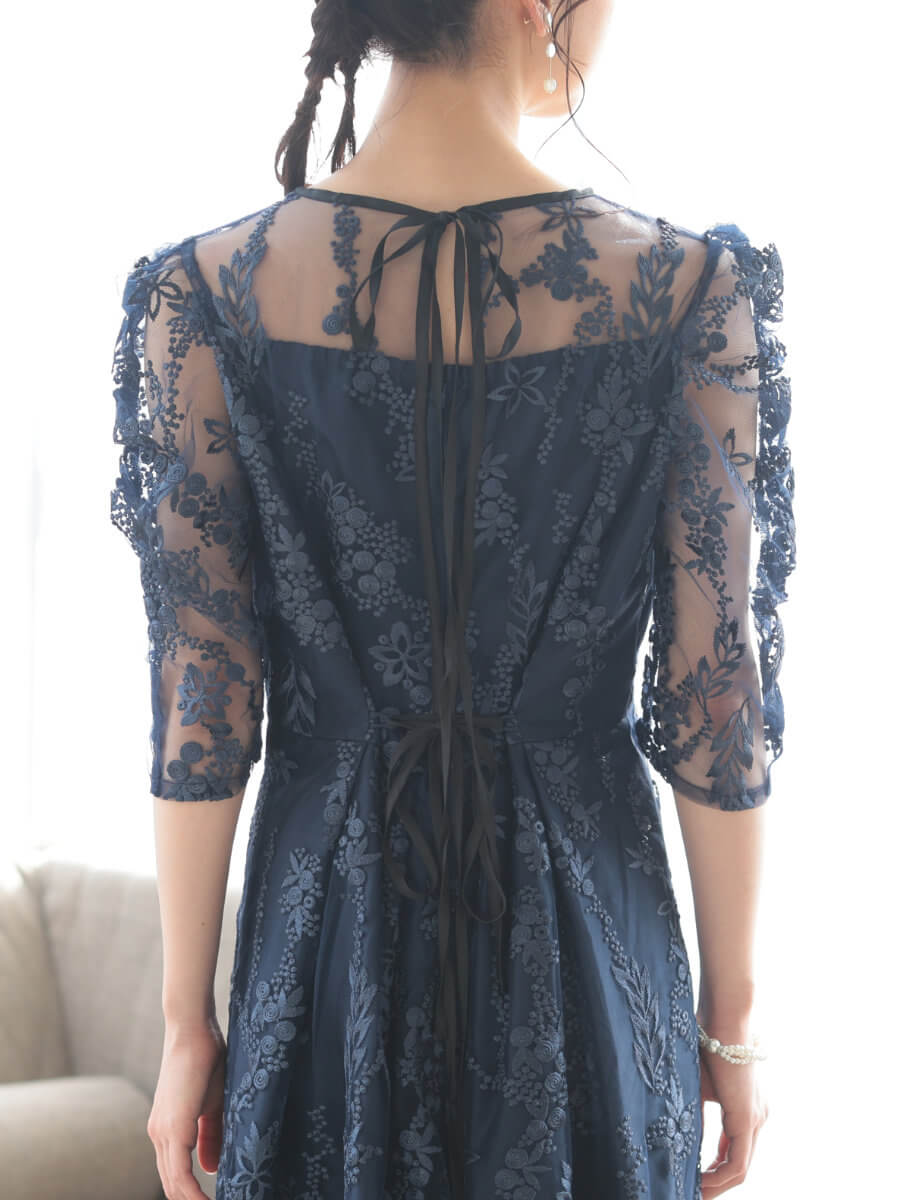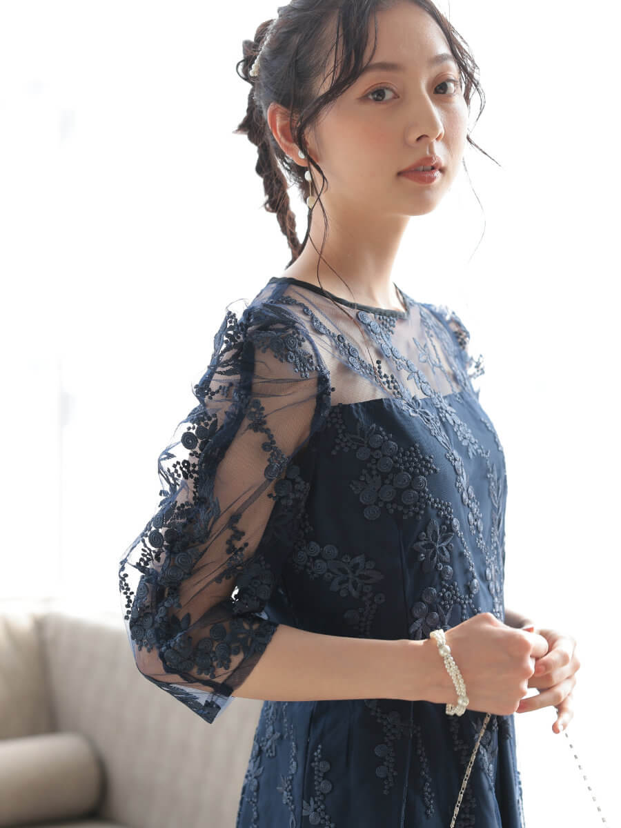 フラワー刺繍ミディドレスLnv