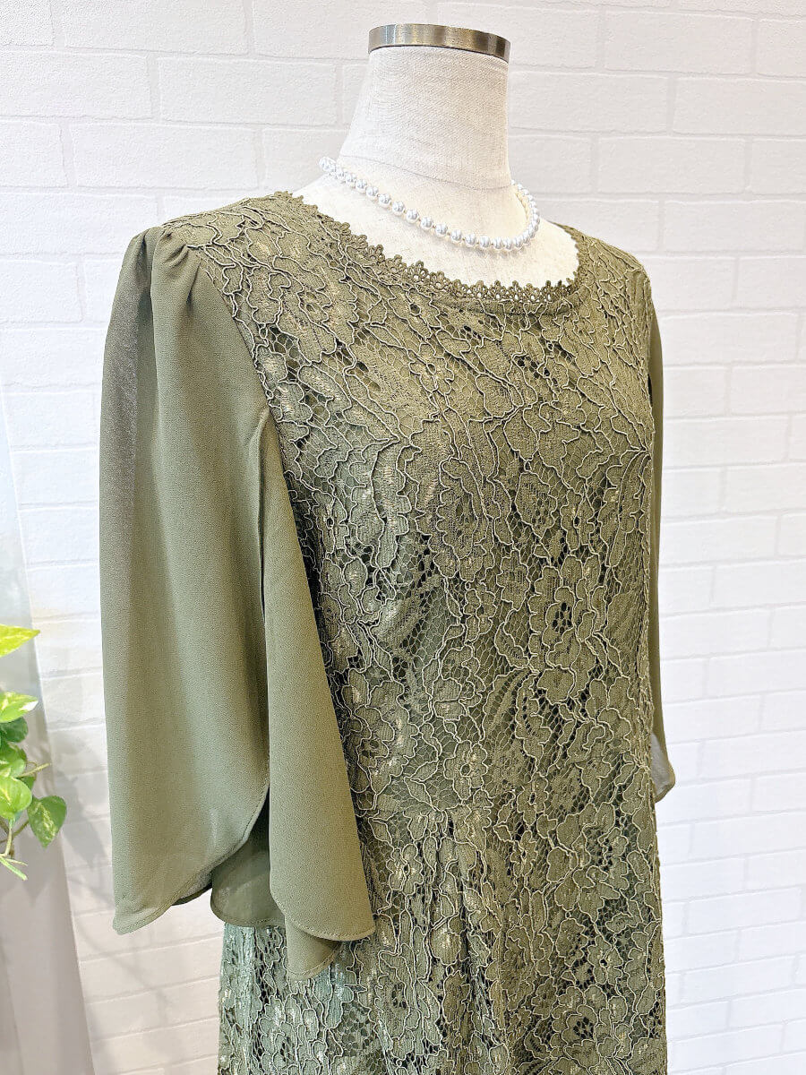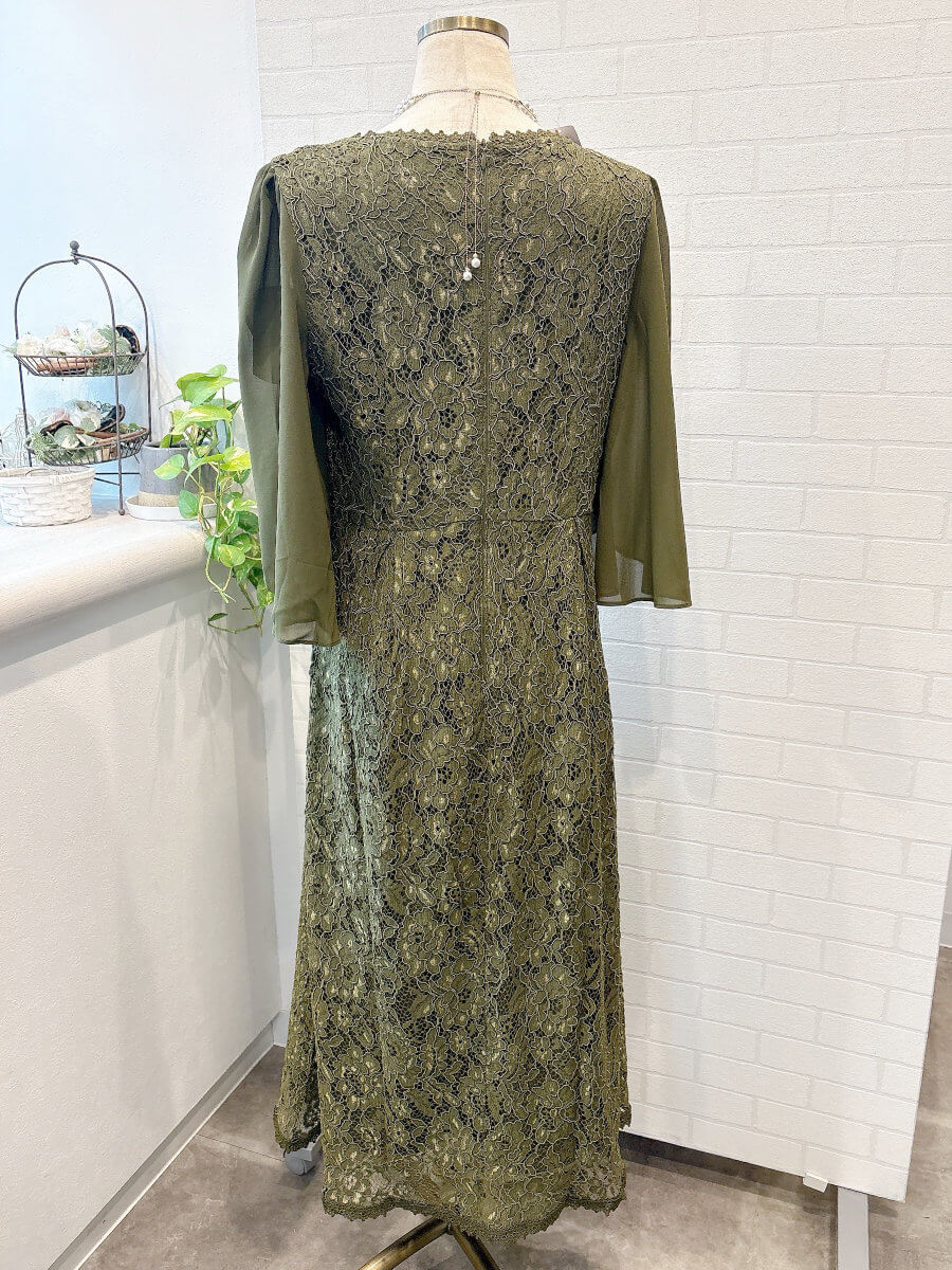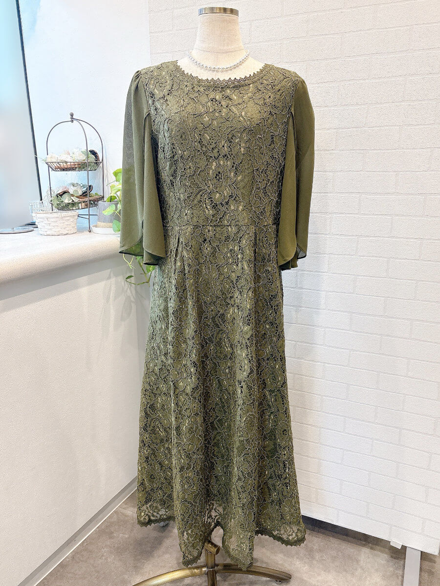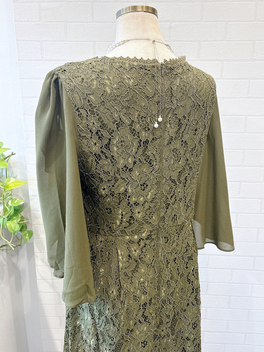 フレアシフォンスリーブレースドレスLkha3L