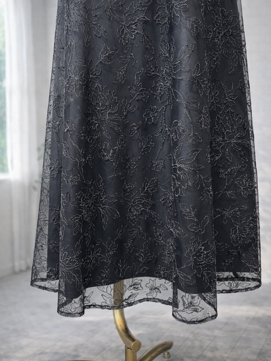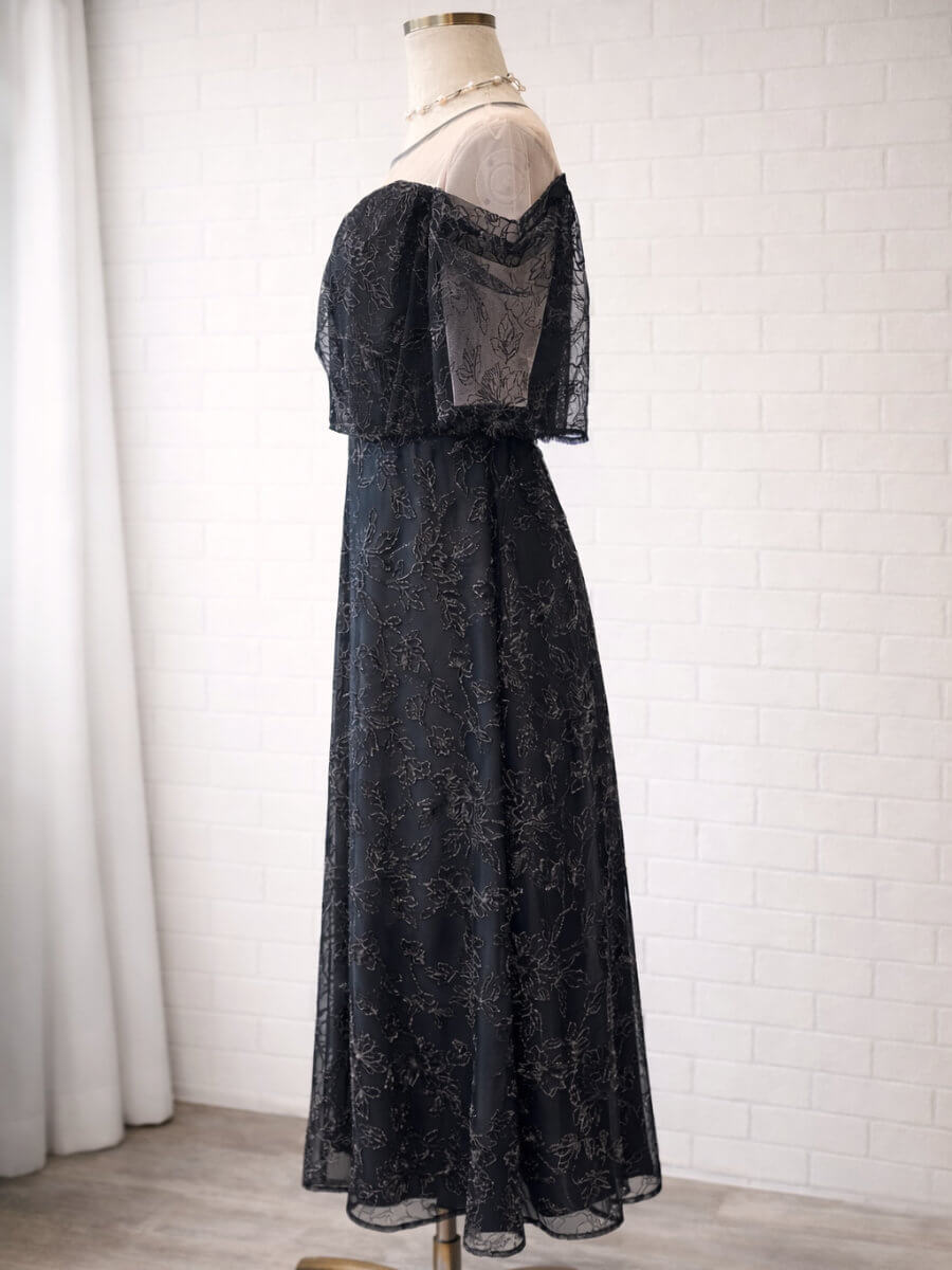 ドレープラメ刺繍ドレスLBK