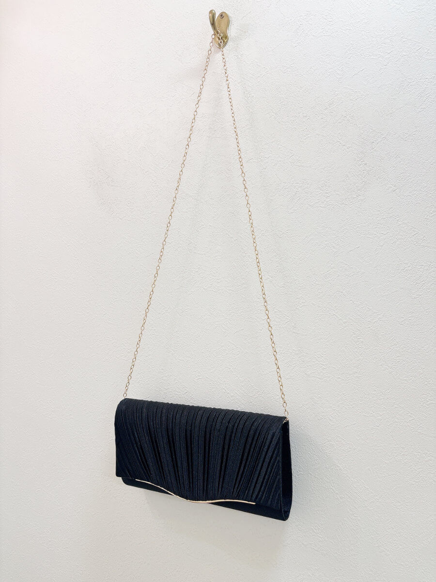 カラー:ブラック サイズ:横25cm 縦14cm 付属品:チェーン(ゴールド) 商品について:光沢のあるお素材にゴールドのモチーフがデザインされたバッグ。シンプルで上品な商品です。