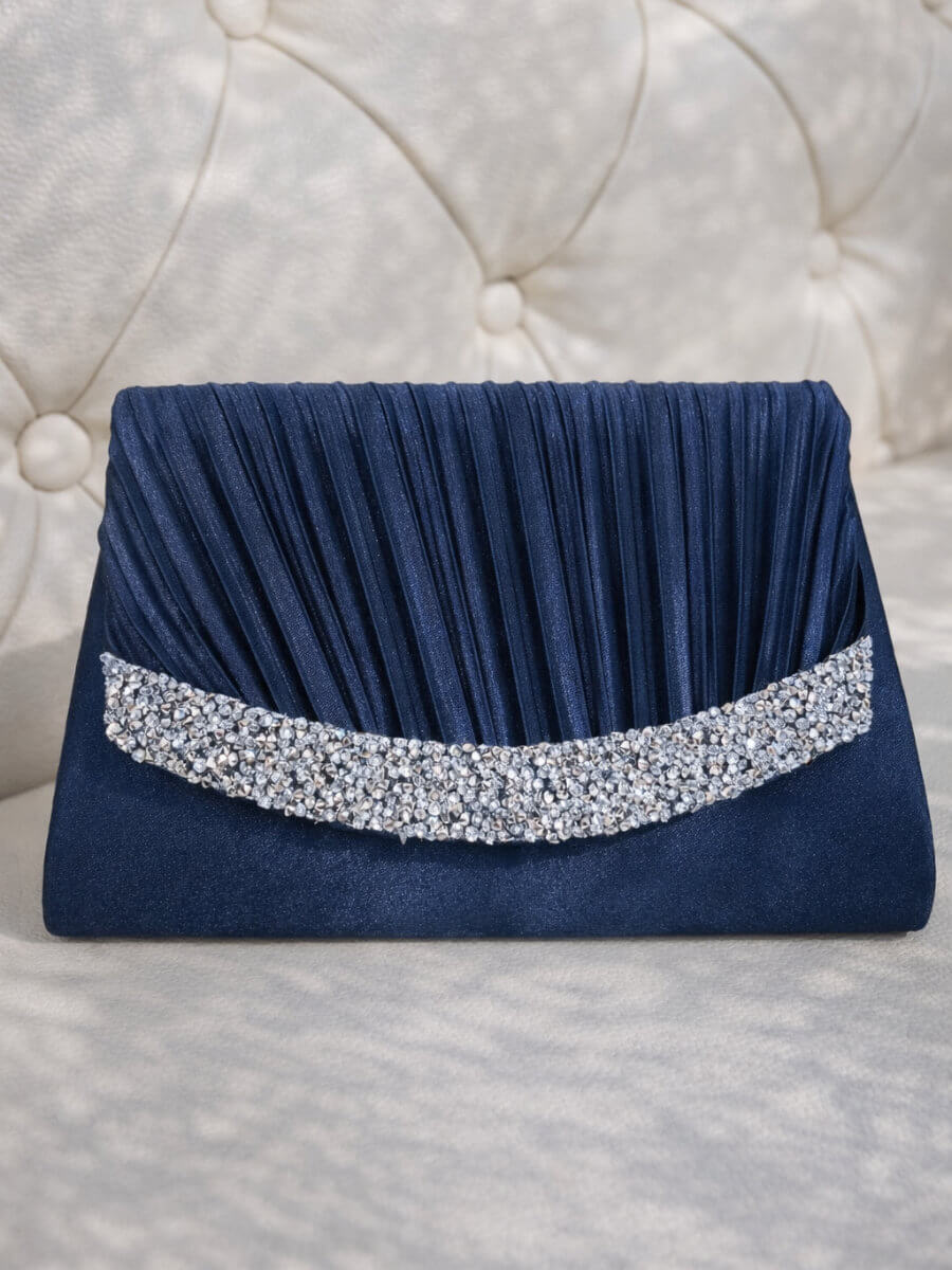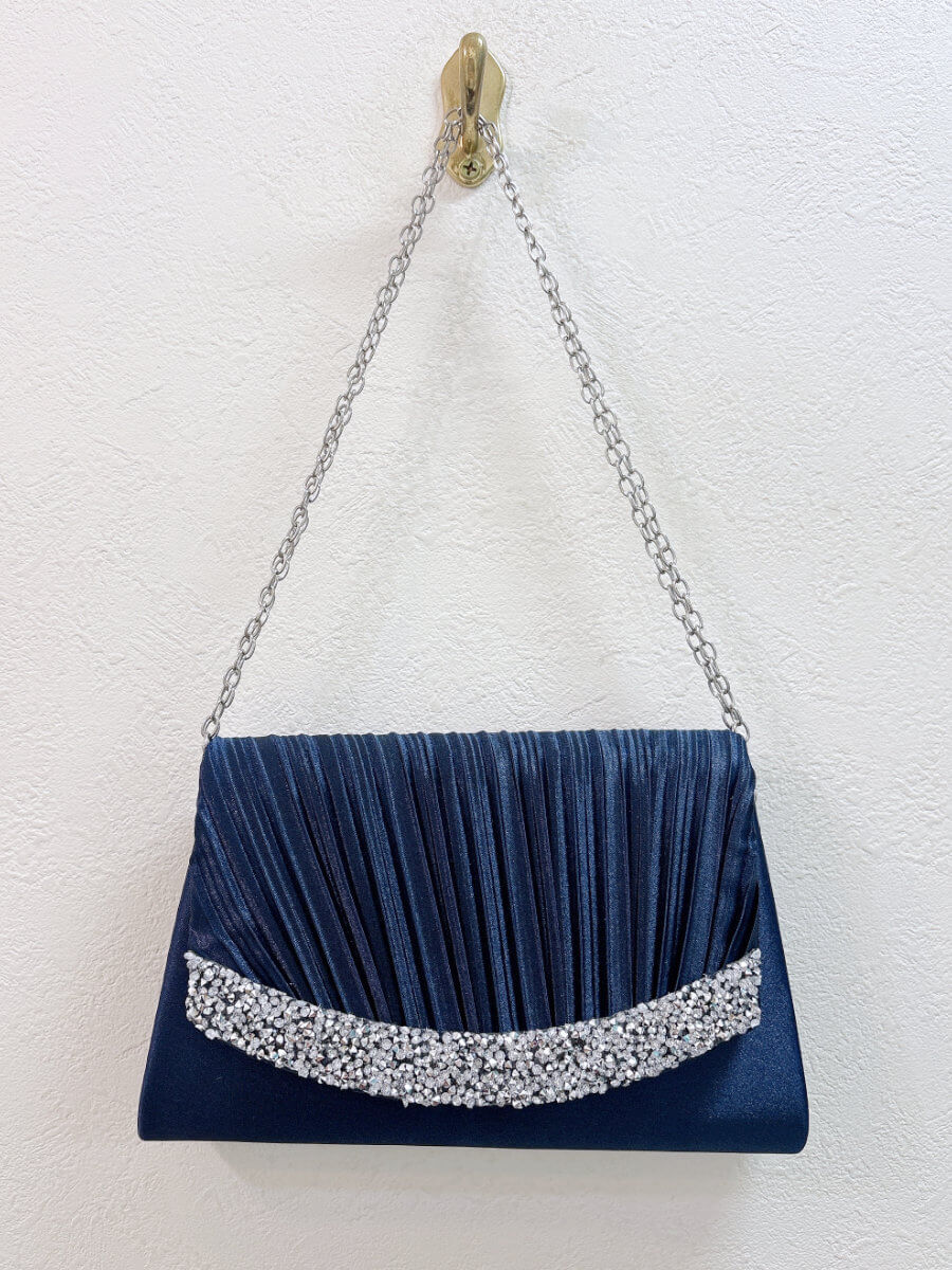 ◇カラー:ネイビー ◇大きさ:底辺21cm 高さ14cm ◇商品について:ネイビーにシルバーのビジューが華やかなデザインです。小ぶりでかわいらしく上品な印象に。