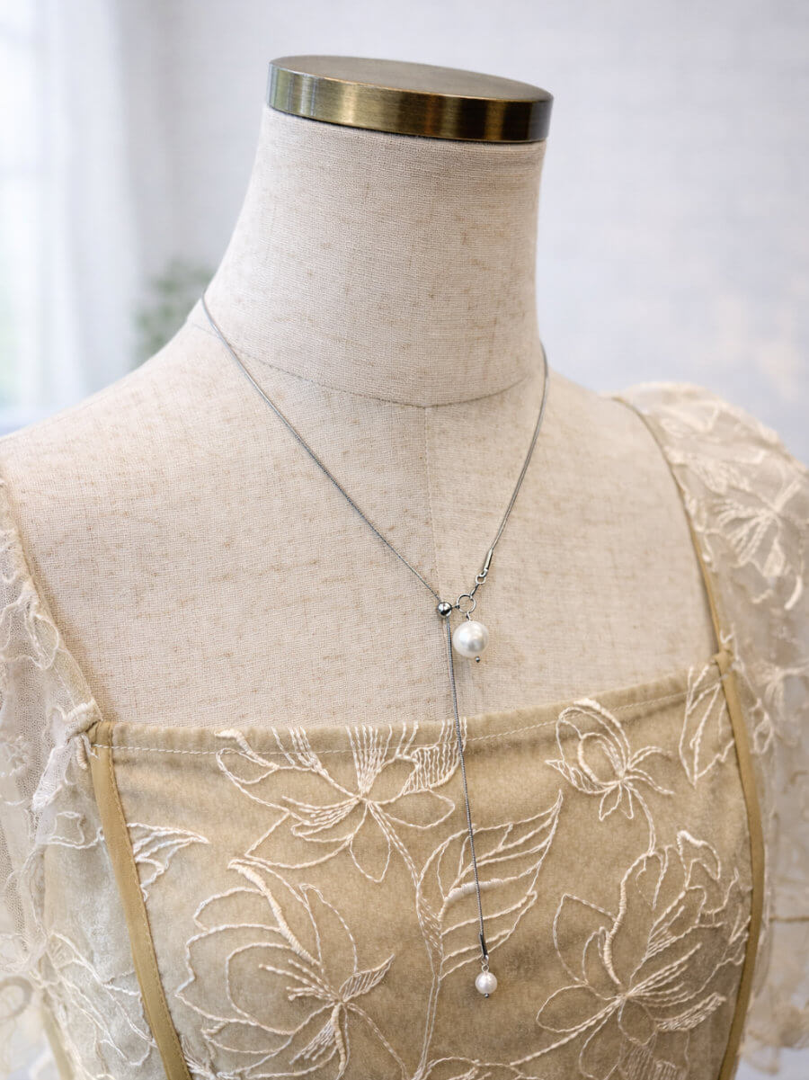 ◇カラー:シルバー ◇商品について:つけ方色々遊べるマルチウェイのネックレスです。ドレスの形やTPOに合わせて5パターンに形状を変えてイメチェンができます。