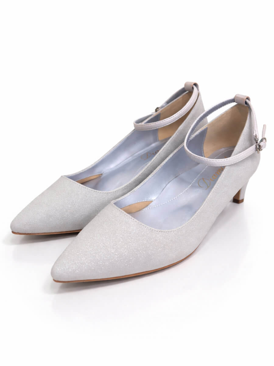 ◇商品について:シンプルなベージュ素材にほんのりラメ感があります。シンプルなのでどんなドレスやパンツドレスにも合わせやすくヒールも4.5cmとローヒールになります。ストラップ付で安心してお履き頂けます。ストラップは脱着可能なのでストラップレスでもご利用頂けます。