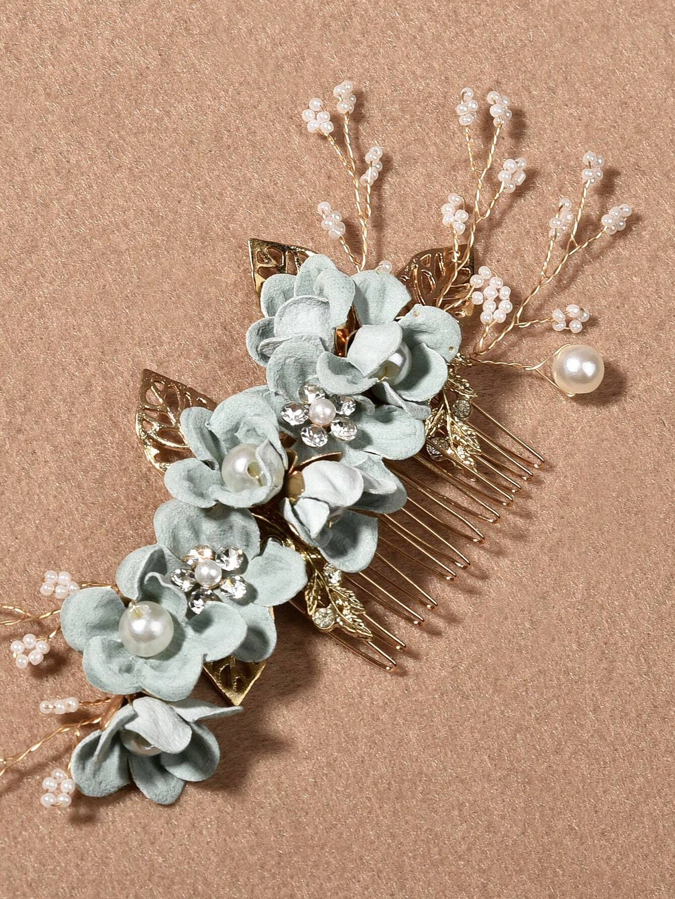 ミントグリーンのお花のヘッドアクセサリー