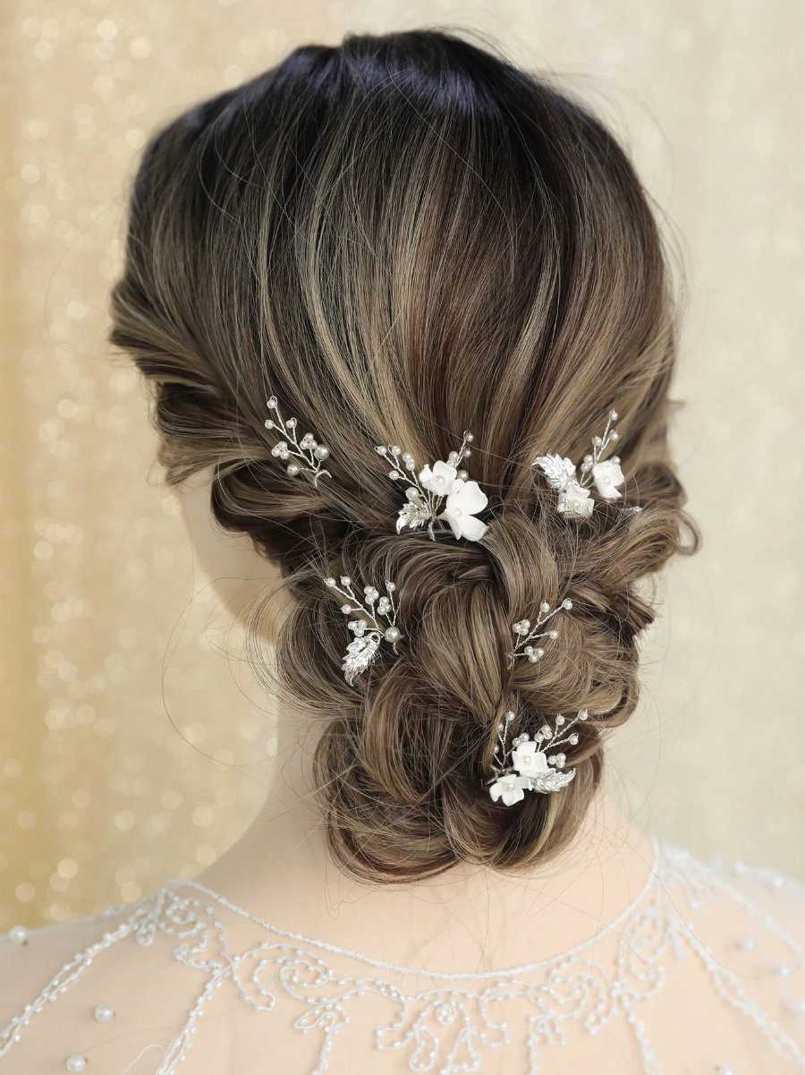 白の小花とパールのデザインです。
