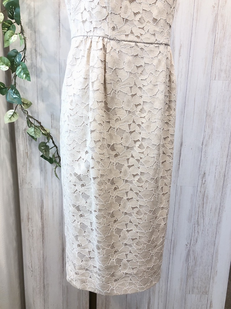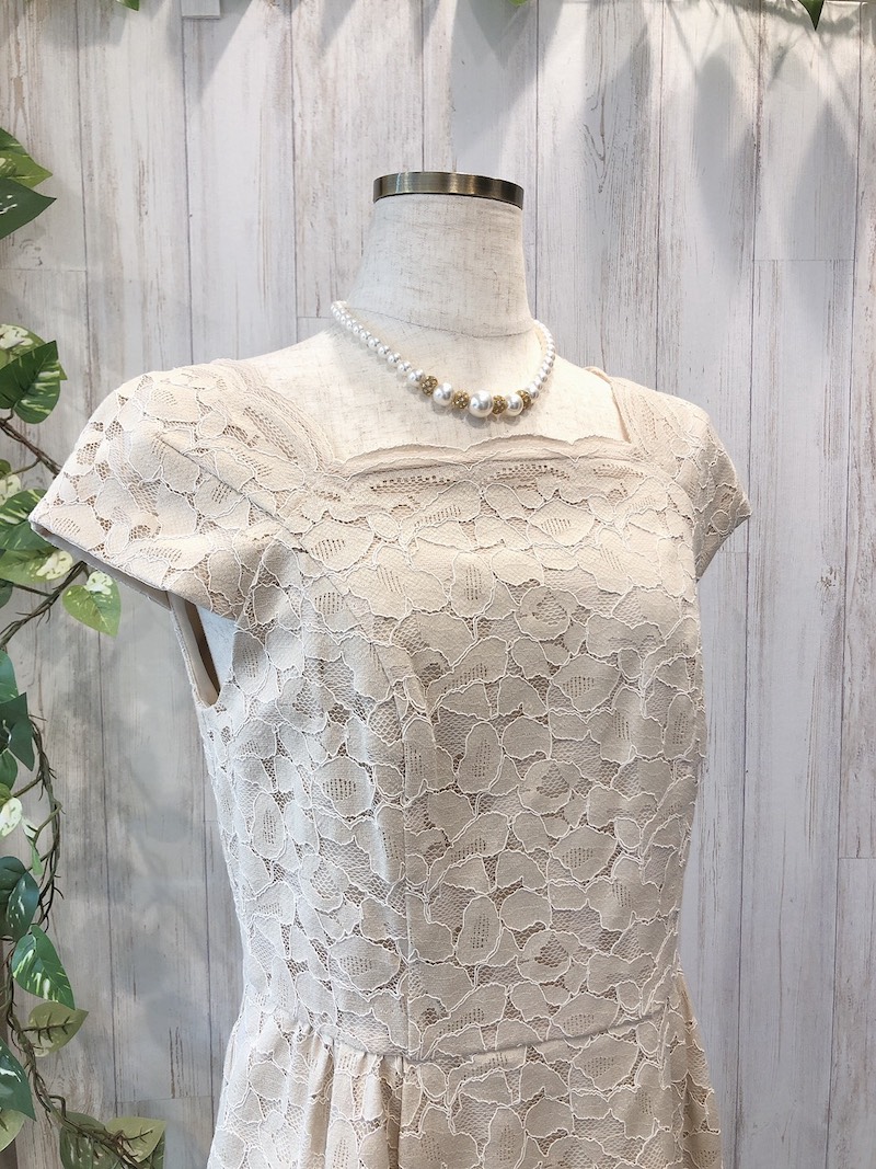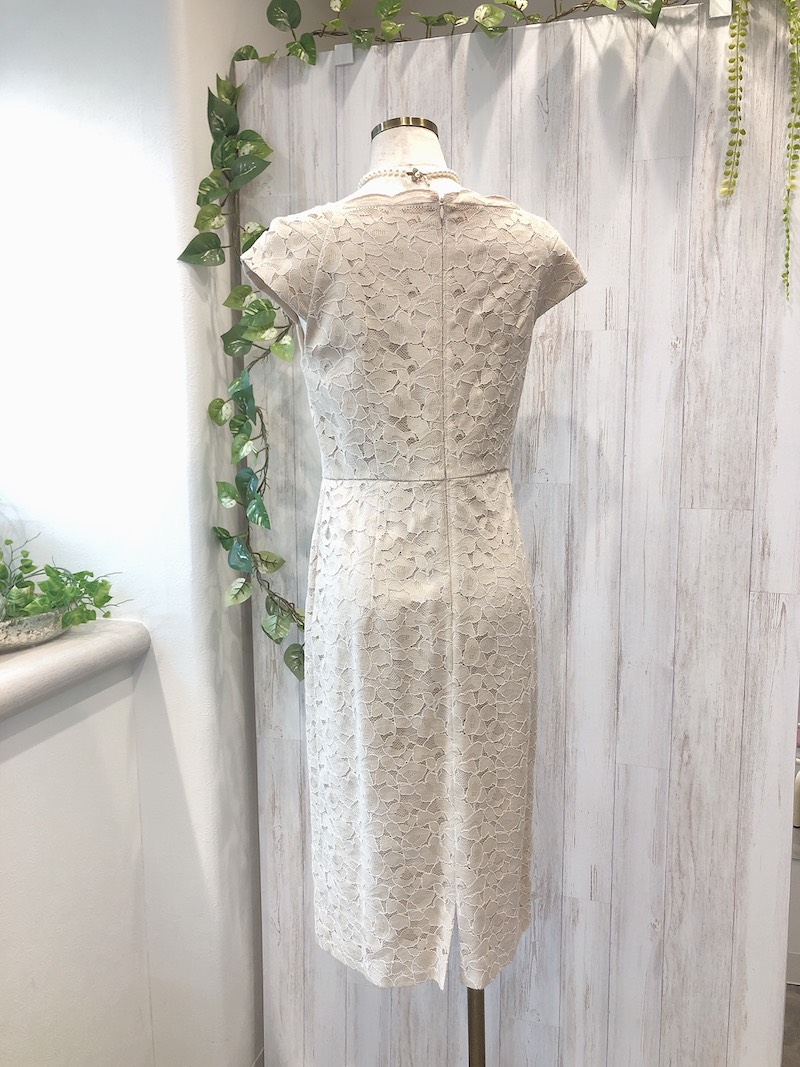 ◇商品詳細:ベージュ系のインナーの上にベージュのレースでデザインされているワンピースです。日本製にこだわったブランドでとても丁寧なお作りで質のいい素材を使用しています。